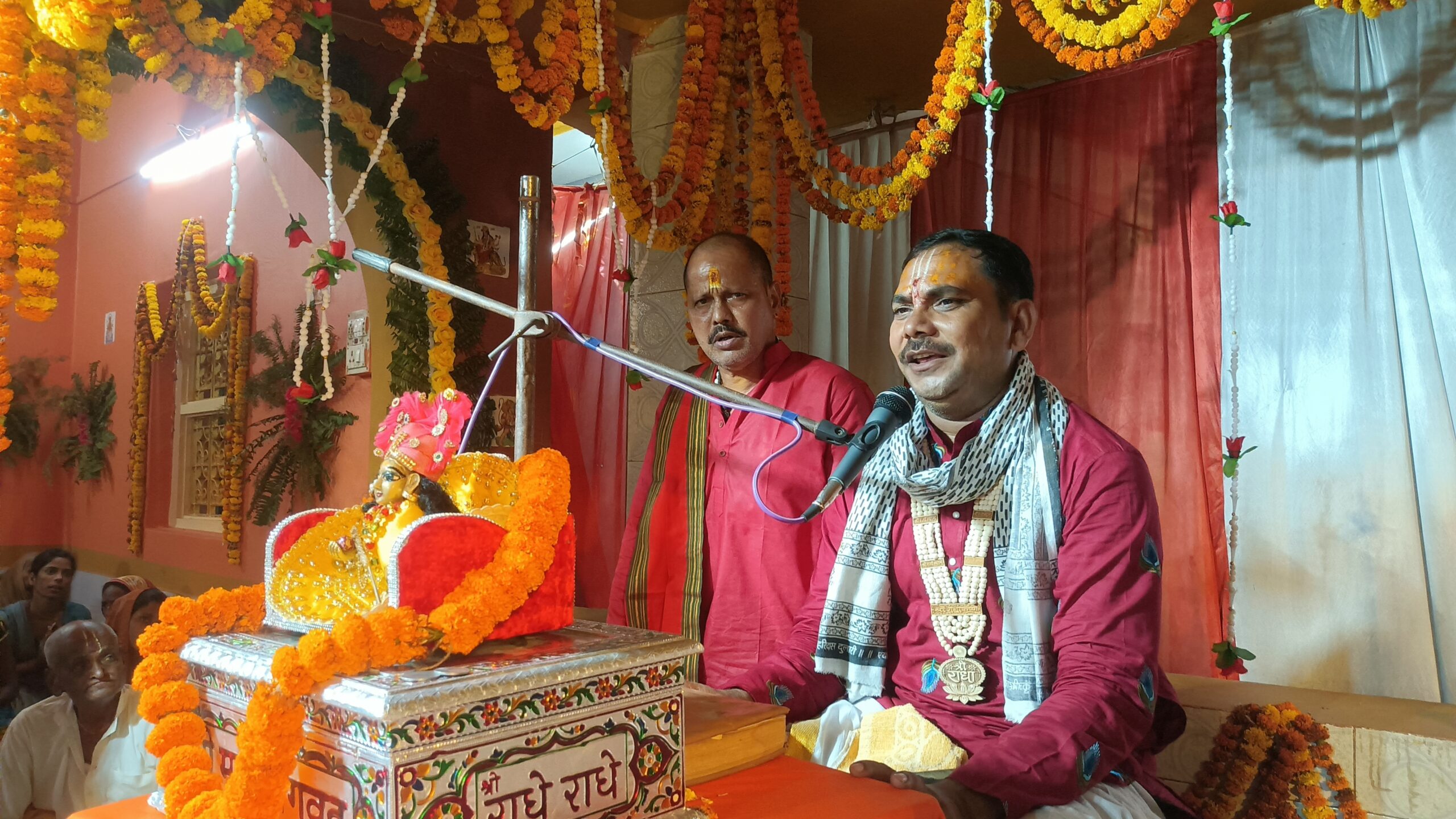 मानसी. प्रखंड क्षेत्र अंतर्गत सैदपुर गांव के ठाकुर बाबा मंदिर के प्रांगण में दुर्गा पूजा के अवसर पर आयोजित नौ दिवसीय श्रीमद्भागवत कथा के चौथे दिन कथा श्रवण को लेकर श्रद्धालुओं की भीड़ उमड़ पड़ी. कानपुर से आये कथावाचक विनम्र महाराज ने अजामिल एवं भरत की कथा का वर्णन किया. विनम्र ने प्रवचन में कहा कि भागवत कथा केवल धार्मिक अनुष्ठान नहीं, बल्कि मानव जीवन को उसके वास्तविक उद्देश्य की ओर मार्गदर्शन कराने वाली गाथा है. उन्होंने अंत मति सद गति का महत्व समझाते हुए कहा कि मृत्यु समय की मति ही जीव की गति तय करती है. इसलिए जीवनभर मन, वचन और कर्म से श्रीहरि के चरणों में स्थिर रहना चाहिए. यही मानव जीवन की सर्वोच्च साधना है. मौके पर मुख्य यजमान गोरख यादव व उनकी पत्नी, सहायक यजमान आचार्य अवधेश मंडल, प्रखंड प्रमुख प्रतिनिधि शुशांत यादव, पूर्व उप सरपंच एवं हरदेव यादव बिजली यादव ने पूजा-अर्चना कर कथा का शुभारंभ किया.