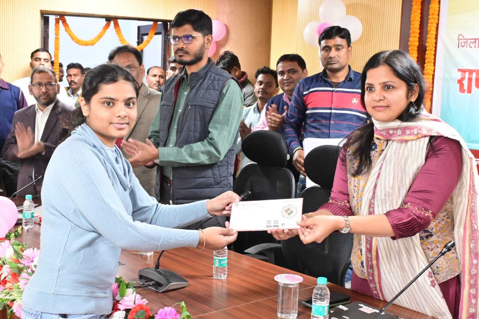 उपायुक्त ने पहली बार वोटर बनी गौरी कुमारी, रेशमी कुमारी, अंकित कुमार, निशा कुमारी, शिबेन कुमार सिंह, सृजिता लो, वैष्णवी कुमारी, कुसुम कुमारी, शिवानी कुमारी, पायल कुमारी, प्रेम कुमार व ऐशमी सिंह को उनका मतदाता पहचान पत्र (एपिड कार्ड) सौंपा. साथ ही समृद्ध लोकतंत्र की परंपरा को आगे बढ़ाने का आह्वान किया.