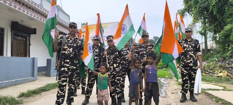 दिघलबैंक. स्वतंत्रता दिवस के अवसर पर हर घर झंडा कार्यक्रम के तहत भारत नेपाल सीमा की सुरक्षा में तैनात एसएसबी ने लोगों को हर घर झंडा फहराने के बारे में जागरूक किया.मंगलवार के दिन एसएसबी एफ कंपनी दिघलबैंक व पलसा कैम्प के अधिकारी व जवानों ने सीमावर्ती क्षेत्र के विभिन्न जगहों पर कार्यक्रम आयोजित कर जागरूकता रैली निकालकर तिरंगे के महत्व उसके सम्मान के बारे में बताया. वन्दे मातरम् तथा भारत माता की जय, के नारों के साथ तिरंगा यात्रा निकाली गई. एसएसबी एफ कंपनी दिघलबैंक के प्रभारी असिस्टेंट कमांडेंट सत्यपाल शर्मा ने बच्चों सहित ग्रामीणों को हर घर झंडा के प्रेरित किया.इस कार्यक्रम में पलसा में एसएसबी एसआई जीडी तरपड विश्वास सहित ग्रामीण मौजूद थे. प्रतिनिधि, दिघलबैंक स्वतंत्रता दिवस के अवसर पर हर घर झंडा कार्यक्रम के तहत भारत नेपाल सीमा की सुरक्षा में तैनात एसएसबी ने लोगों को हर घर झंडा फहराने के बारे में जागरूक किया.मंगलवार के दिन एसएसबी एफ कंपनी दिघलबैंक व पलसा कैम्प के अधिकारी व जवानों ने सीमावर्ती क्षेत्र के विभिन्न जगहों पर कार्यक्रम आयोजित कर जागरूकता रैली निकालकर तिरंगे के महत्व उसके सम्मान के बारे में बताया. वन्दे मातरम् तथा भारत माता की जय, के नारों के साथ तिरंगा यात्रा निकाली गई. एसएसबी एफ कंपनी दिघलबैंक के प्रभारी असिस्टेंट कमांडेंट सत्यपाल शर्मा ने बच्चों सहित ग्रामीणों को हर घर झंडा के प्रेरित किया.इस कार्यक्रम में पलसा में एसएसबी एसआई जीडी तरपड विश्वास सहित ग्रामीण मौजूद थे.