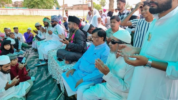 पाकुड़िया. प्रखंड में ईद मिलादुन्नबी के मौके पर कई स्थानों पर जुलूस निकाला गया. जुलूस में महेशपुर विधायक प्रो स्टीफन मरांडी शामिल हुए और हजरत मोहम्मद की सीख को याद किया. विधायक श्री मरांडी ने सबसे पहले सभी को ईद मिलादुन्नबी की मुबारकबाद दी. उन्होंने कहा कि मुसलमानों को हजरत मोहम्मद के बताए रास्ते पर चलना ही उनके प्रति सच्ची मोहब्बत होगी. जुलूस में सरकार की आमद मरहबा, हुजूर की आमद मरहबा, हिंदुस्तान जिंदाबाद, इस्लाम जिंदाबाद, संविधान जिंदाबाद जैसे नारों से पूरा इलाका गूंज उठा. विधायक श्री मरांडी ने कहा कि हजरत मोहम्मद का दुनिया में आना सभी के लिए खैर व बरकत की बात है. जुलूस के दौरान लोगों ने हजरत मोहम्मद की सीख को याद किया और उनके बताये रास्ते पर चलने का संकल्प लिया. मौके पर नेजाद अली, डॉ मैनुल हक़, नेजाम अंसारी, आबेद अंसारी , मोईन अंसारी, सिकंदर अली, तनवीर आलम, शांजंहा अंसारी आदि मौजूद थे.