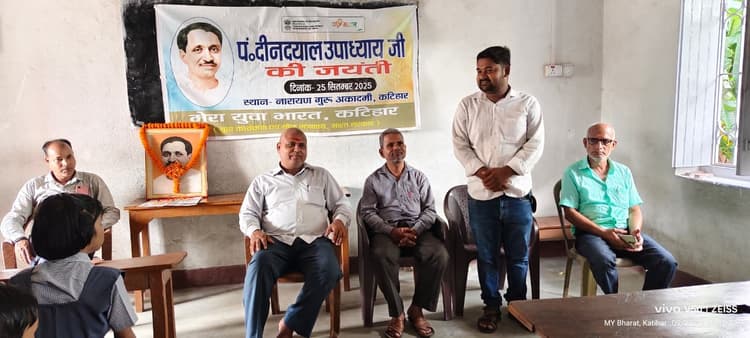 कटिहार युवा कार्य एवं खेल मंत्रालय भारत सरकार की इकाई मेरा युवा भारत कटिहार की ओर से गुरुवार को पंडित दीनदयाल उपाध्याय की जयंती मनायी गयी. निजी विद्यालय में आयोजित दीनदयाल उपाध्याय जयंती में मुख्य अतिथि प्रणव कुमार ने संबोधित करते हुए कहा कि पंडित दीनदयाल उपाध्याय जयंती 25 सितंबर को अंत्योदय दिवस के रूप में मनायी जाती है. वे एक भारतीय राजनीतिज्ञ और विचारक थे, जो एकात्म मानववाद की अपनी अवधारणा के लिए जाने जाते थे और अपने अंत्योदय दर्शन के माध्यम से सबसे गरीब लोगों के उत्थान के पक्षधर थे. उनका योगदान सांस्कृतिक-राष्ट्रीय मूल्यों, विकेंद्रीकृत आर्थिक विकास और सामाजिक समानता पर केंद्रित था. संगठन के एमटीएस बिक्रम कुमार मंडल ने बताया कि भारत वर्ष की महान और गौरवशाली संस्कृति को समय-समय पर अनेक महापुरूषों ने अपने चिंतन एवं दर्शन से समृद्ध किया है. एक महान और आदर्श व्यक्तित्व पंडित दीनदयाल उपाध्याय है, जिन्होंने अपना संपूर्ण जीवन मानव सेवा, समाज सेवा और राष्ट्र सेवा के लिए समर्पित कर दिया. पंडित दीनदयाल आधुनिक भारत के एक संत तुल्य व्यक्तित्व थे. उनका सामाजिक, आर्थिक, दार्शनिक, आध्यात्मिक और राजनैतिक चिंतन, राष्ट्रवाद और सामाजिक समानता पर आधारित था. वसुधैव कुटुम्बकम की भावना पर आधारित उनका एकात्म मानववाद का दर्शन आधुनिक संदर्भ में आज भी मानव जाति के लिए पथ प्रदर्शक है. कार्यक्रम में शिक्षक मनोज कुमार, वीरू कुमार सिन्हा, माय भारत युवा स्वयंसेवक कुणाल कुमार, आशुतोष कुमार एवं सभी छात्र छात्राएं उपस्थित थे.