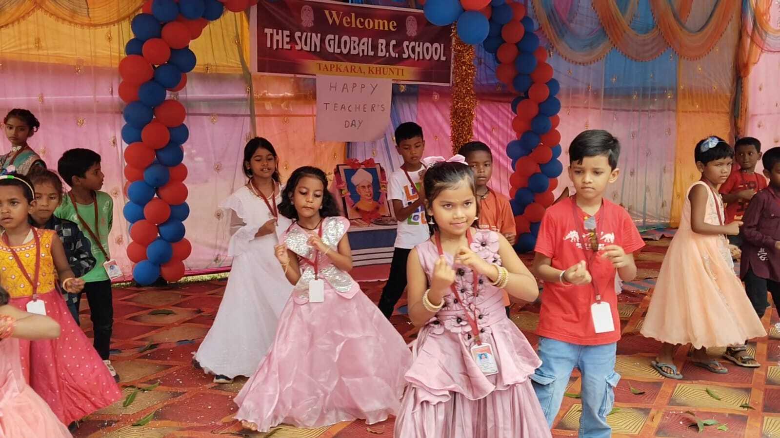 द सन ग्लोबल बीसी स्कूल तपकारा में शुक्रवार को शिक्षक दिवस समारोह का आयोजन किया गया. कार्यक्रम की शुरुआत भारत रत्न सर्वपल्ली डॉ राधाकृष्णन की तस्वीर पर माल्यार्पण कर व दीप प्रज्ज्वलित कर की गयी. इसके बाद बच्चों ने केक काटा. समारोह में सांस्कृतिक कार्यक्रम प्रस्तुत किये. विद्यालय के निदेशक प्रदीप गुप्ता ने शिक्षक दिवस व गुरु की महत्ता पर प्रकाश डाला. धन्यवाद ज्ञापन प्राचार्य अनिता गुप्ता ने किया. मौके पर शिक्षक बंधन गुड़िया, सेबेयान कंडुलना, इला खलखो, अनिता हेमरोम, ज्योति आइंद, एनी गुड़िया व अभिभावक उपस्थित थे.डिस्क्लेमर: यह प्रभात खबर समाचार पत्र की ऑटोमेटेड न्यूज फीड है. इसे प्रभात खबर डॉट कॉम की टीम ने संपादित नहीं किया है