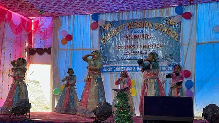 पाकुड़ नगर. एवरेट मिशन चैरिटेबल ट्रस्ट द्वारा संचालित एवरेट मिशन स्कूल ने अपना वार्षिकोत्सव सह क्रिसमस सेलिब्रेशन सोनजोड़ी के शमशेरा गांव स्थित अनाथ आश्रम सह हॉस्टल में मनाया. इस दौरान बच्चों ने रंगारंग सांस्कृतिक प्रस्तुतियां दी. कार्यक्रम में बतौर मुख्य अतिथि प्राइवेट स्कूल एसोसिएशन के प्रदेश महासचिव रामरंजन सिंह, डीएसडब्ल्यू बीजी बारा, विद्यालय प्रबंधन के सदस्य दीपक अजय हेम्ब्रम, मीडिया प्रभारी मौजूद थे. छोटे बच्चों ने नर्सरी और एलकेजी के बाल नृत्य के माध्यम से अतिथियों का स्वागत किया. रेट्रो डांस और अच्छे-बुरे स्पर्श पर आधारित एकांकी प्रस्तुतियों ने दर्शकों को खूब आकर्षित किया. कार्यक्रम का संचालन संस्था के डायरेक्टर एलेक्स सैम ने किया. बोर्ड ऑफ डायरेक्टर सुनीता मरांडी ने सभी शिक्षकों और स्टाफ को गिफ्ट देकर सम्मानित किया. अतिथियों ने कहा कि कहा कि ऐसे कार्यक्रम न केवल बच्चों में रचनात्मकता और आत्मविश्वास बढ़ाते हैं, बल्कि उन्हें सांस्कृतिक मूल्यों और सामाजिक सहभागिता की सीख भी देते हैं. क्रिसमस का त्योहार प्रेम, भाईचारा और सौहार्द का प्रतीक है. कहा कि बच्चों को हमेशा सकारात्मक सोच और सहयोग की भावना बनाए रखना चाहिए.