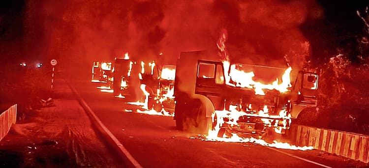 मेदिनीनगर/चैनपुर. पलामू जिले के चैनपुर थाना क्षेत्र के अंधारीढोढ़ा के समीप हाइवा और कमांडर जीप की सीधी टक्कर में कमांडर जीप पर सवार एक युवक की मौत हो गयी. जबकि, आधा दर्जन से अधिक यात्री घायल हो गये. मृतक की पहचान रामगढ़ प्रखंड के हाजी फारूक अंसारी के 25 वर्षीय पुत्र फिरोज अंसारी के रूप में हुई है. घटना शुक्रवार शाम करीब 6:45 बजे की है. घटना के बाद आक्रोशित ग्रामीणों ने सात हाइवा को आग के हवाले कर दिया. सूचना मिलने के बाद चैनपुर थाना की पुलिस घटनास्थल पर पहुंची. आक्रोशित लोगों को समझाने-बुझाने का प्रयास किया. वहीं, शव को कब्जे में लेकर पोस्टमार्टम के लिए एमएमसीएच भेज दिया है. घटना के बाद हाइवा चालक फरार हो गया. जानकारी के अनुसार, फिरोज अंसारी कमांडर जीप पर सवार होकर नेउरा से रामगढ़ अपने घर जा रहा था. इसी क्रम में अंधारीढोढ़ा के पास कमांडर जीप और हाइवा की सीधी टक्कर हो गयी. ग्रामीणों ने बताया कि हाइवा की रफ्तार काफी तेज थी. टक्कर लगने के बाद कमांडर पर सवार फिरोज अंसारी ने मौके पर ही दम तोड़ दिया. हादसे के बाद आक्रोशित लोग सड़क पर उतर आये और सड़क से गुजर रहे अन्य हाइवा को रोक कर उसमें तोड़फोड़ शुरू कर दी. डर के मारे हाइवा के चालक वहां से भाग निकले. इसके बाद गुस्सायी भीड़ ने एक-एक कर सात हाइवा को आग के हवाले कर दिया. आग लगाने के बाद हाइवा पूरी तरह से जल चुके हैं. आग से सभी हाइवा के टायरों में एक-एक कर धमाका हो रहा है, जो काफी दूर तक सुनायी दे रहा है. सुरक्षा दृष्टिकोण को लेकर पुलिस ने सड़क पर दोनों तरफ से आवागमन को बंद कर दिया गया है. अनुमान लगाया जा रहा है कि सात हाइवा को आग लगाये जाने से करीब ढाई करोड़ रुपये का नुकसान हुआ है.