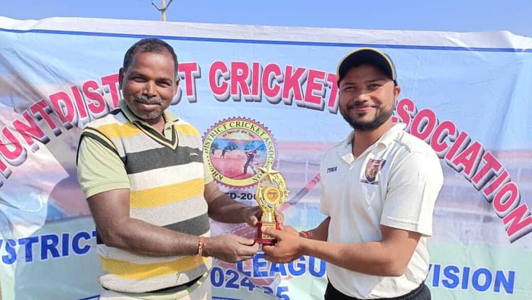 प्रतिनिधि, खूंटी : खूंटी जिला क्रिकेट एसोसिएशन के तत्वावधान में आयोजित ए डिवीजन क्रिकेट प्रतियोगिता में शुक्रवार को खूंटी क्रिकेट एकेडमी और वीर बिरसा क्रिकेट एकेडमी के बीच खेला गया. जिसमें खूंटी क्रिकेट एकेडमी ने नौ विकेट से मैच जीत लिया. पहले बल्लेबाजी करते हुए वीर बिरसा क्रिकेट अकादमी 114 रन पर ऑलआउट हो गयी. जिसमें सर्वाधिक सरवन कुमार ने 54 रन, अमर कुमार 20, सुमित कुमार 12 रन का योगदान दिया. गेंदबाजी में खूंटी क्रिकेट एकेडमी की ओर से अभिषेक सहदेव ने पांच, सतीश मुंडा ने तीन और रूपेश लिंडा ने एक विकेट लिये. लक्ष्य का पीछा करने उतरी खूंटी क्रिकेट एकेडमी की टीम ने एक विकेट के नुकसान पर 11 ओवर दो बॉल पर 115 रन बना लिये. जिसमें सर्वाधिक सत्यम कुमार ने नाबाद 78 रन बनाये. वहीं मनीष कुमार ने 25 रन का योगदान दिया. गेंदबाजी में वीर बिरसा की ओर से धनराज कुमार ने एक विकेट लिया. इस मैच का प्लेयर ऑफ द मैच अभिषेक सहदेव को राजू बड़ाइक ने पुरस्कृत किया.