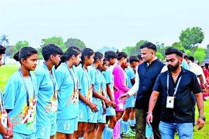 बेगूसराय बरौनी. खेलो इंडिया यूथ गेम के तहत सोमवार को शाम में ग्रुप- बी के दो मैच खेले गये. यमुना भगत स्टेडियम तेघड़ा में आंध्र प्रदेश एवं मणिपुर का मैच