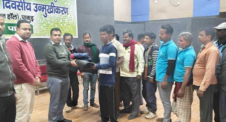 प्रतिनिधि, पाकुड़. बढ़ती ठंड को देखते हुए नगर परिषद की ओर से मंगलवार को रविन्द्र भवन में श्रमिकों के बीच कंबल व ट्रैक सूट का वितरण किया गया. जानकारी के अनुसार, 120 कार्यरत सफाई कर्मी, दैनिक मजदूर, ड्राइवर, पंप ऑपरेटर, बिजली मिस्त्री के बीच कंबल और ट्रैक सूट का वितरण किया गया. नगर प्रशासक अमरेंद्र कुमार चौधरी ने बताया कि बिना मजदूर के काम करना संभव नहीं है. बढ़ती ठंड में मजदूरों के हित को ध्यान में रखते हुए गर्म पोशाक का वितरण किया गया है. उन्होंने श्रमिकों से अपील करते हुए कहा कि शहर को स्वच्छ बनाए रखने में सभी का योगदान सर्वोपरी रहा है. ठंड के मौसम में कार्य करने में किसी प्रकार की कोई परेशानी ना हो, इसलिए गर्म पोशाक का वितरण किया गया है. मौके पर नगर मिशन प्रबंधक मनीष कुमार मिश्रा, विवेक कुमार गुप्ता, कंचन यादव समेत नप के कर्मी मौजूद थे.