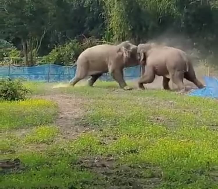 बागड़ी में दो हाथियों में भिड़ंत, वीडियो वायरल: