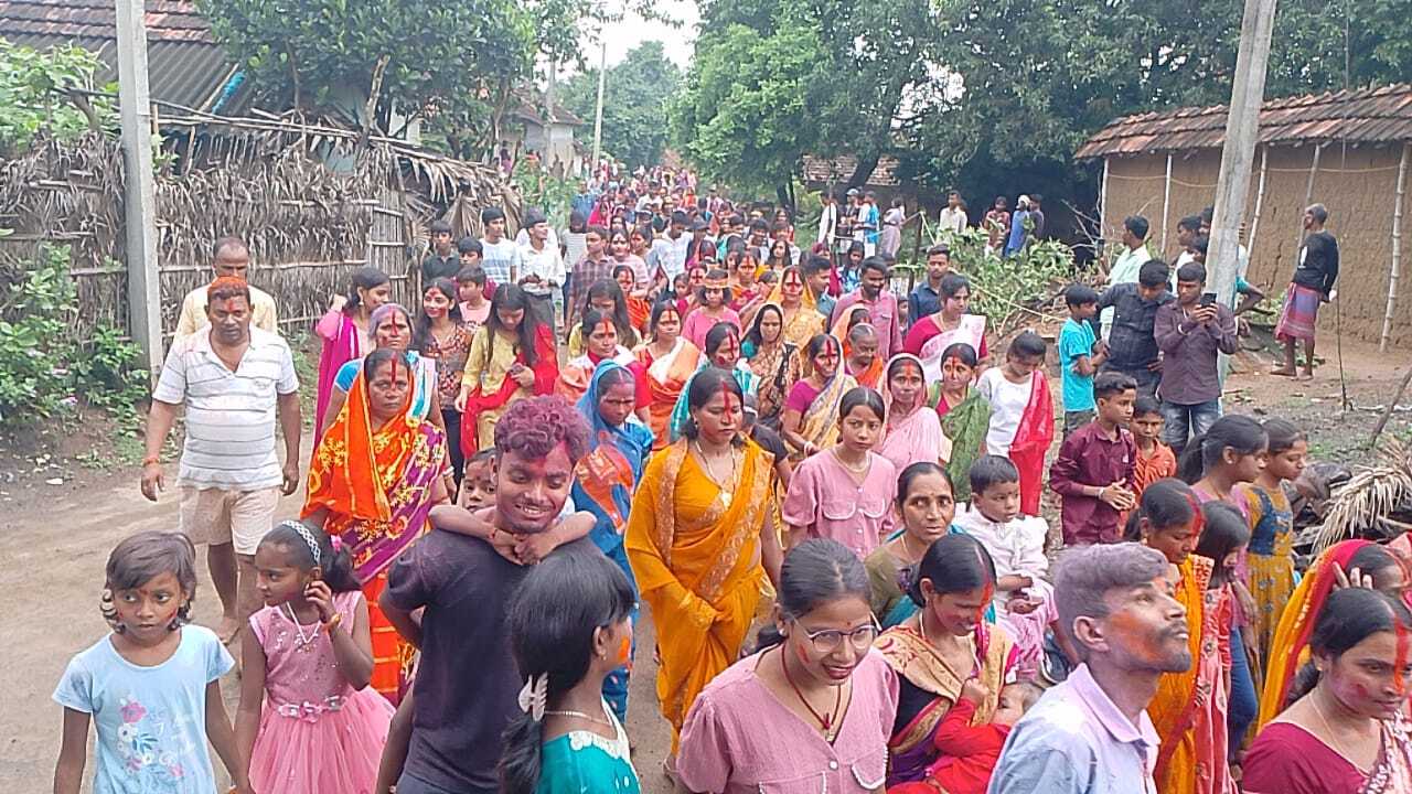 पाकुड़िया. पाकुड़िया बाजार समेत आसपास के गांवों में गुरुवार को विजयादशमी पर मां दुर्गा की प्रतिमा का विसर्जन किया गया. विसर्जन आश्छे बोछोर आबार होबे के जयघोष के बीच संपन्न हुआ. वहीं शुक्रवार को मोंगलाबांध दुर्गा मंदिर में एकादशी पर सिंदूर खेला के साथ मां दुर्गा को भावभीनी विदाई दी गयी. इस दौरान सुहागिनों ने मां दुर्गा को सिंदूर अर्पित किया और एक-दूसरे को सिंदूर लगाकर मंगलकामना की. सिंदूर खेला के उपरांत जयकारे के बीच हजारों महिला-पुरुष अबीर खेले. बाजे-गाजे की धुन पर नाचते-गाते प्रतिमा लेकर जुलूस के साथ पंचायत परिसर स्थित मेला मैदान लेकर पहुंचे. यहां भव्य मेले का आयोजन किया गया. शाम ढलने पर जुलूस मोंगलाबांध गांव की परिक्रमा करते हुए मोड़ स्थित पाल पोखरा पहुंची. वहां पूरे श्रद्धा और सम्मान के साथ मां दुर्गा की प्रतिमाओं का विसर्जन किया गया. शांति व्यवस्था बनाए रखने के लिए थाना प्रभारी मनोज कुमार महतो दलबल के साथ मौजूद थे. विसर्जन यात्रा के दौरान दंडाधिकारी रोहित गुप्ता, एसआइ नागेंद्र कुमार सहित अन्य पुलिस अधिकारी मौजूद रहे.