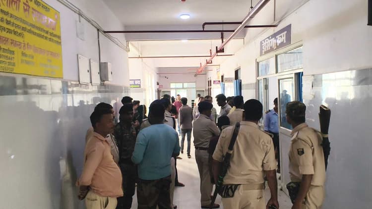 फोटो - 12 कैप्सन - अस्पताल में मौजूद पुलिस वीरपुर अनुमंडल के भीमनगर थाना क्षेत्र अंतर्गत कटैया पावर हाउस स्थित बीएमपी के फायरिंग रेंज से निकली