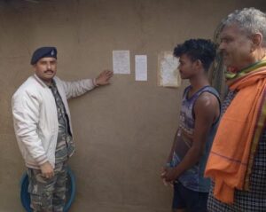फरार अभियुक्त के घर चिपकाया इश्तेहार