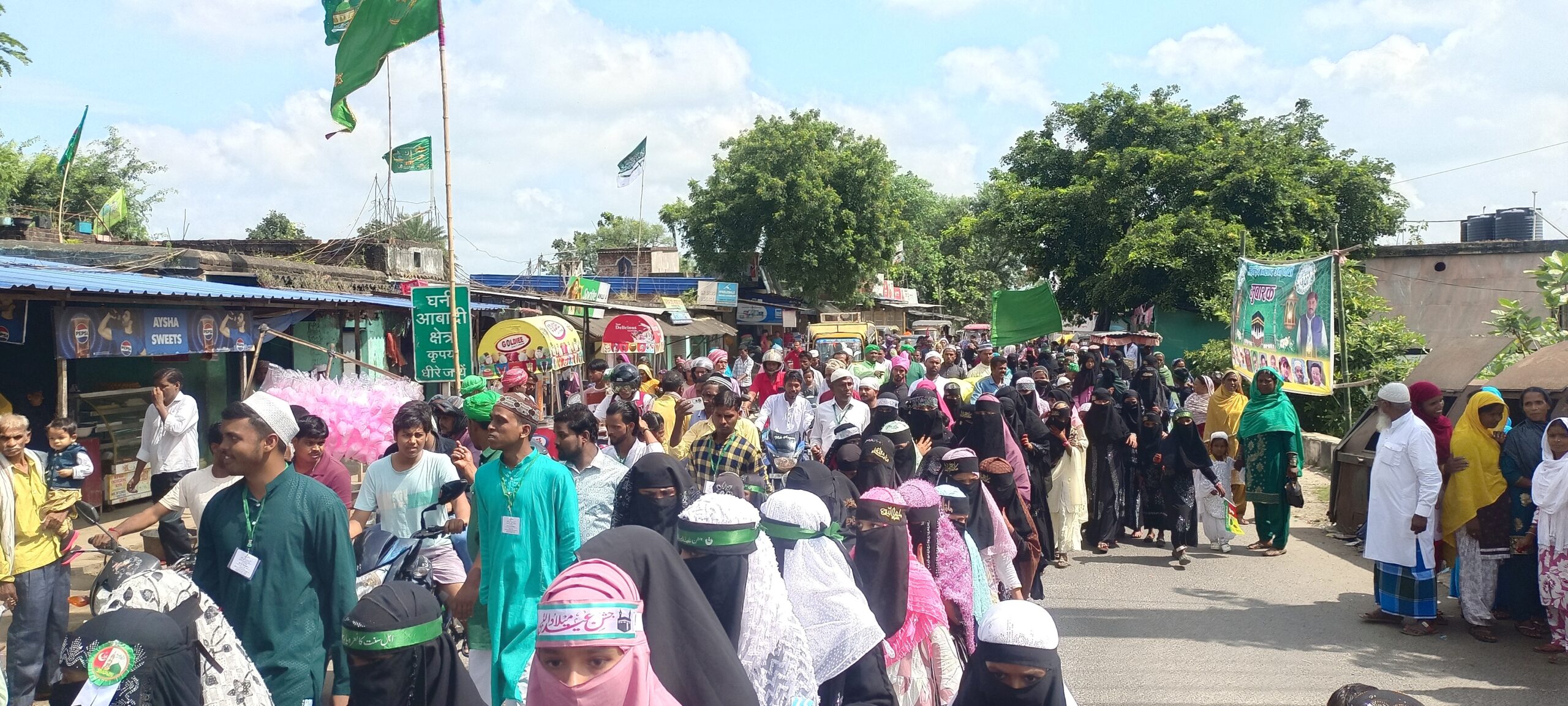प्रतिनिधि, जसीडीह : ईद मिलादुन्नबी का त्योहार पैगंबर हजरत मोहम्मद साहब के जन्मदिन के रूप में मुस्लिम धर्मावलंबियों ने हर्षोल्लास के साथ मनाया. इस अवसर टाभाघाट, घाघी, रोहिणी, संथाली, गंगटी, कुंजीसार, रुपसागर, खोरीपानन, कोकरीबांक, जोरमो, गणजोरा सहित अन्य जगहों पर लोगों ने जुलूस निकाल कर भ्रमण किया. जुलूस में काफी संख्या में महिला-पुरुष शामिल रहे. लोगों ने हाथों में बड़े-बड़े झंडे लेकर क्षेत्र का भ्रमण किया. इसमें मोहम्मद साहब के कार्यों को याद किया गया. साथ ही एक-दूसरे को बधाई दी तथा उनके संदेशों को लोगों तक पहुंचाया. साथ ही देश में अमन चैन व आपसी भाईचारा कायम रहने की दुआ मांगी. टाभाघाट से निकला जुलूस जसीडीह सिनेमा हॉल मोड़, हनुमान नगर मोड़ होते हुए टाभाघाट पहुंचकर समापन किया गया. वहीं संथाली से जुलूस निकाल कर रेलवे ओवरब्रिज होते हुए सिनेमा हॉल मोड़ से मुख्य बाजार होते हुए संथाली पहुंच कर जुलूस का समापन किया. शाम को एक-दूसरे से मिल कर खुशी मनाया और बधाई दी. त्योहार के दौरान विधि व्यवस्था बनाये रखने के लिए जसीडीह थाने की पुलिस की ओर से हरेक स्थानों पर पुलिस पदाधिकारी व पुलिस बल तैनात थे. मौके पर इमाम हजरद हाफिज, फखरुद्दीन अली अहमद, आजाद अंसारी, शमीम अंसारी, जुली अंसारी, अफजल अंसारी, जब्बार अंसारी, रफीक मियां, गुलजार मियां, मकबूल अंसारी, महफूज अंसारी, मो तैयब अंसारी, आजाद सेख, सहाबुद्दीन अंसारी, आलम अंसारी, महबूब अंसारी, इरफान अली, इमाबुल मियां, सरफराज अंसारी, आरिफ अंसारी आदि मौजूद थे.