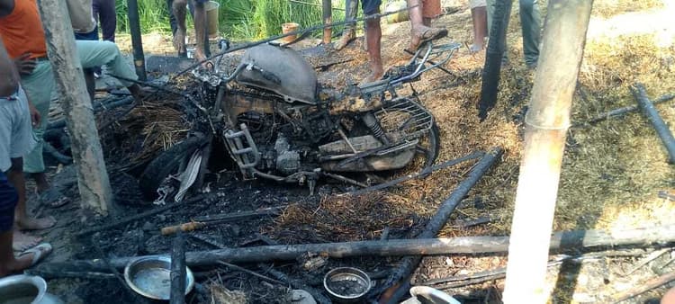 कुनौली. थाना क्षेत्र डगमारा स्थित नया टोला सिकरहट्टा में गुरुवार सुबह अचानक आग लगने से करीब डेढ़ लाख से अधिक की संपत्ति सहित एक घर जल गया. अगलगी की घटना में घर में रखी एक बाइक भी जल गयी. प्रत्यक्षदर्शियों के अनुसार डगमारा के सिकरहट्टा नया टोला वार्ड 19 निवासी शम्भु मुखिया के घर की महिलाएं सुबह में खाना बना रही थी. इसी दौरान चूल्हे की चिंगारी से घर में आग लगने की बात बताई जा रही है. आग की लपटें और तपिस के बाद ग्रामीण व अगल बगल के लोग घटना स्थल पर पहुंचे. लोगों ने आनन फानन में चापाकल एवं बाल्टी से आग बुझाने लगे. करीब एक घंटे के कड़ी मशक्कत के बाद ग्रामीणों ने आग पर काबू पा लिया. पीड़ित ने अधिकारी से सरकारी मदद की गुहार लगायी है.