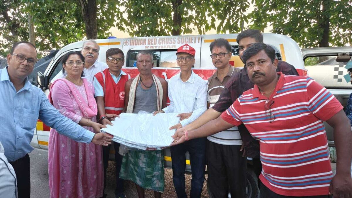 रेडक्रांस सोसाइटी ने बाढ़ पीड़ितों के बीच तिरपाल का किया वितरण