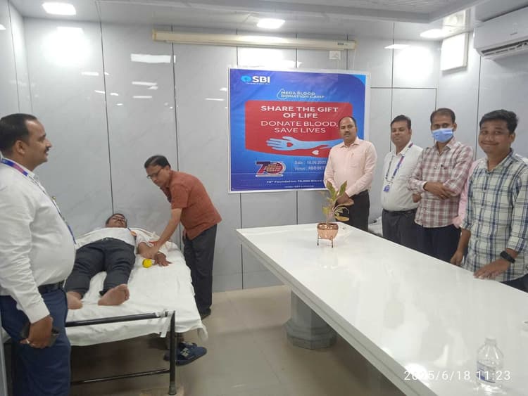 फोटो 15, कैप्सन : रक्तदान करते आरएसीसी के प्रबंधक व अन्य बेतिया. रक्तदान महादान है. इसके द्वारा किसी जरूरतमंद व्यक्ति का जीवन बचाया जा सकता है. उक्त बाते भारतीय स्टेट बैंक के क्षेत्रीय प्रबंधक निरंजन कुमार पाण्डेय ने कही. वे बुधवार को क्षेत्रीय कार्यालय में आयोजित मेगा रक्तदान शिविर को संबोधित कर रहे थे. उन्होंने कहा कि रक्तदान आपातकालीन स्थिति में या किसी बीमारी से पीड़ित व्यक्ति के लिए जीवन रक्षक साबित हो सकता है. नतीजतन हर एक स्वस्थ व्यक्ति को रक्तदान जरूर करनी चाहिए. क्षेत्रीय प्रबंधक श्री पांडेय ने रक्तदान के लिए कई उदाहरण दिए और बैंक कर्मियों को प्रेरित किया. एसबीआई के क्षेत्रीय कार्यालय के सभागार में 70 वां स्थापना दिवस के अवसर पर आयोजित उक्त शिविर में उन्होंने कहा कि रक्तदान कर दूसरे को नई जिंदगी देने के साथ-साथ स्वयं विभिन्न बीमारियों से बच सकते हैं. इस दौरान आरएसीसी के प्रबंधक केशव कुमार ने सबसे पहले अपना रक्तदान किया. उक्त अवसर पर रविकांत शर्मा, विजय कुमार, शैलेश जायसवाल्,ओम प्रकाश मिश्र, विजय कुमार, गौरव कुमार, अनिल कुमार तिवारी आदि उपस्थित रहे.