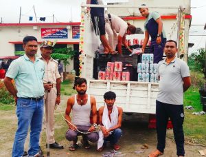 सब्जी के कैरेट में छिपाकर ले जायी जा रही 810 लीटर विदेशी शराब जब्त, दो तस्कर गिरफ्तार