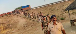 शांतिपूर्ण चुनाव संपन्न को लेकर पुलिस पदाधिकारियों ने किया फ्लैग मार्च