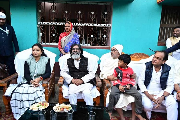 प्रतिनिधि, नाला (जामताड़ा) मुख्यमंत्री हेमंत सोरेन एवं विधायक कल्पना सोरेन झारखंड विधानसभा अध्यक्ष रबींद्र नाथ महतो के पैतृक गांव पाटनपुर पहुंचे. शनिवार शाम चार बजे हेलीकॉप्टर से बाघमारा स्थित हेलीपैड पहुंचे, जहां उन्हें गार्ड ऑफ आनर दिया गया. वहां से वह सीधे स्पीकर के आवास पहुंचे. सीएम व उनकी धर्मपत्नी ने विस अध्यक्ष के पिता स्व. गोलोक बिहारी महतो के चित्र पर पुष्पांजलि अर्पित कर श्रद्धांजलि दी एवं नमन किया. इस दौरान स्वास्थ्य मंत्री डॉ इरफान अंसारी सहित कई सामाजिक, राजनीतिक कार्यकर्ता एवं परिजनों ने भी पुष्प अर्पित कर नमन किया. मुख्यमंत्री एवं उनकी पत्नी ने शोक संतप्त परिजनों को सांत्वना दी एवं हर विपत्ति में साथ रहने का वचन दिया. कल्पना सोरेन ने परिवार की एक-एक महिलाओं से मिलकर उनका परिचय प्राप्त किया. मुख्यमंत्री के कार्यक्रमों को लेकर जिला प्रशासन पूरी तरह मुस्तैद थे. मौके पर उपायुक्त कुमुद सहाय, एसपी एहतेशाम वकारिब, उप विकास आयुक्त निरंजन कुमार, अनुमंडल पदाधिकारी अनंत कुमार, अनुमंडल पुलिस पदाधिकारी मनोज कुमार महतो सहित अन्य पदाधिकारी, सामाजिक, राजनीतिक कार्यकर्ता एवं काफी संख्या में स्थानीय लोग मौजूद थे. फोटो – 11 स्व. गोलाेक बिहारी महतो के चित्र पर श्रद्धांजलि देते सीएम हेमंत सोरेन व अन्य. फोटो – 12 स्पीकर से बातचीत करते मुख्यमंत्री, गांडेय विधायक व अन्य.