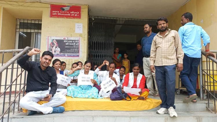 सत्तरकटैया. एफआरएस पोर्टल पर रजिस्ट्रेशन नहीं करने व समान काम समान वेतन की मांग को लेकर आशा कार्यकर्ताओं की अनिश्चितकालीन हड़ताल गुरुवार से शुरू हो गयी है. पीएचसी पंचगछिया में आशा कार्यकर्ताओं ने एकत्रित होकर धरना दिया व मांगपत्र संबंधी ज्ञापन प्रभारी चिकित्सा पदाधिकारी को समर्पित किया. आशा कार्यकर्ताओं ने बताया कि हम सभी एनएचएम कर्मी को फेस अटेंडेंस बनाने के लिए कहा गया है. जिसमें नियमित कर्मी को शामिल नहीं किया गया है. जिसका हमलोग विरोध करते है. उन्होंने समान कार्य के लिए समान वेतन, समय पर वेतन भुगतान, उच्च गुणवत्ता वाले मोबाइल देने, यात्रा भत्ता देने, फेस अटेंडेंस बनाने में आने वाली समस्या को दूर करने की मांग को लेकर हड़ताल की जा रही है.