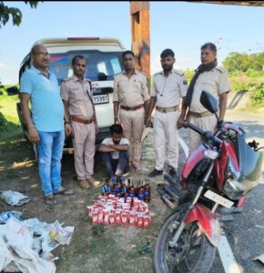 कटिहार उत्पाद अधीक्षक के निर्देश पर उत्पाद टीम ने बलरामपुर थाना क्षेत्र के लोहागाढ़ा पुल के समीप शुक्रवार को वाहन चेकिंग अभियान चलाकर एक तस्कर को विदेशी शराब के साथ गिरफ्तार किया है. उत्पाद अधीक्षक के निर्देश पर उत्पाद विभाग की टीम ने सीमावर्ती थाना क्षेत्र के बलरामपुर के लोहागाढ़ा पुल पर गुप्त सूचना के आधार पर वाहन चेकिंग अभियान चलाया. पश्चिम बंगाल की ओर से आई एक अपाचे बाइक को संदेह के आधार पर रोक कर उसकी तलाशी ली. उसकी बाइक से 17.640 लीटर विदेशी शराब मिला. शराब मिलते ही उत्पाद पुलिस ने तस्कर अनवर आलम पिता अकमल हुसैन मोहल्ला थाना दालकोला, जिला उतरी दिनाजपुर निवासी को गिरफ्तार कर उसकी बाइक जब्त कर अग्रतर कार्रवाई में जुट गयी है.