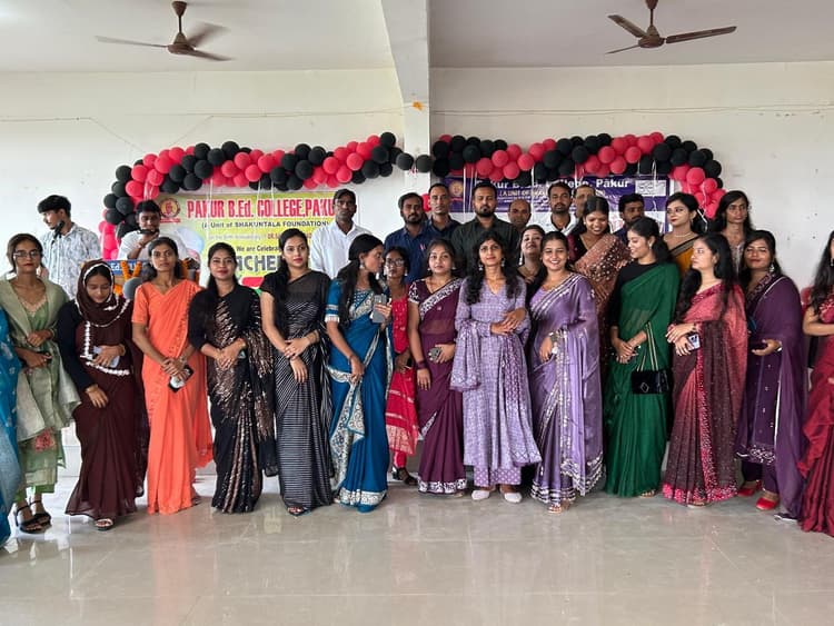 पाकुड़ नगर. पाकुड़ बीएड कॉलेज में शुक्रवार को शिक्षक दिवस समारोह का आयोजन किया गया. कार्यक्रम की शुरुआत मां सरस्वती की चित्र पर माल्यार्पण हुई. इसके बाद छात्र-छात्राओं ने गीत, कविता और नृत्य प्रस्तुत कर शिक्षकों के प्रति अपनी भावनाएं व्यक्त की. विद्यार्थियों ने पुष्पगुच्छ व उपहार भेंट कर अपने शिक्षकों का अभिनंदन किया. प्राचार्य डॉ संजय कुमार ने कहा कि शिक्षक केवल ज्ञान ही नहीं देते, बल्कि विद्यार्थियों के चरित्र और व्यक्तित्व निर्माण में भी अहम योगदान देते हैं. विद्यार्थियों को चाहिए कि वे सदैव अपने गुरुजनों के मार्गदर्शन का आदर करें. शिक्षकों के लिए उन्होंने कहा कि बदलते समय में अध्यापन पद्धति को और आधुनिक बनाना जरूरी है. शिक्षक केवल पढ़ाने तक सीमित न रहें, बल्कि विद्यार्थियों के सपनों को साकार करने में सहयोगी बनें. तभी शिक्षक दिवस सार्थक होगा. मौके पर शंकर कुमार कुशवाहा, अरविंद सिंह, शशिभूषण, ओम प्रकाश सिंह, भागीरथी, विवेक सिंह, दीपक सिंह, सूरज, दीपाली मित्रा, सनोज कुमार सचिन कुमार, हरिश्याम, देवानंद आदि मौजूद थे.