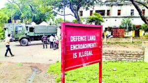 गैरकानूनी है डिफेंस की जमीन का अतिक्रमण, बोर्ड लगने से बेचैन हुए लोग