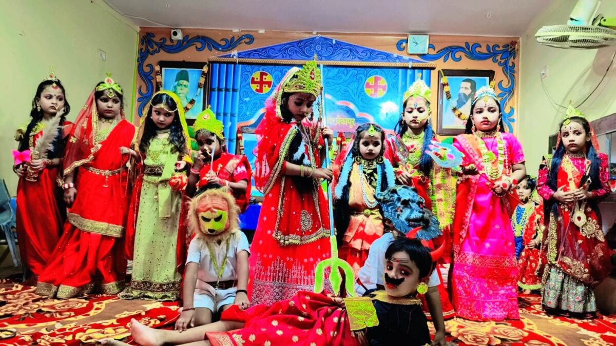 दुर्गा स्वरूप में बच्चियों ने अपनी प्रस्तुति से लोगों को किया मंत्रमुग्ध