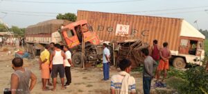 मुठानी : अनियंत्रित ट्रेलर लाइन होटल में जा घुसा़, कर्मी की मौत