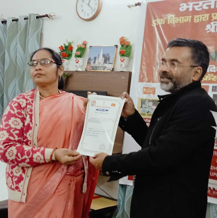 डाकघर की हर योजना लोकोपयोगी, निर्धारित लक्ष्य पूरा करने के लिए किया प्रेरित खगड़िया. डाक विभाग के पोस्टमास्टर जेनरल (पूर्वी) मनोज कुमार ने शाखा और उप डाकघरों में कार्यरत उप डाकपालों, शाखा डाकपालों, डाकिया, एमटीएस आदि डाककर्मियों को उत्कृष्ट कार्य करने के लिए प्रशस्ति पत्र से सम्मानित किया है. सम्मान समारोह की अध्यक्षता बेगूसराय डाक प्रमंडल के डाक अधीक्षक नीरज कुमार पांडे ने की. कार्यक्रम का संचालन बेगूसराय के सहायक डाक अधीक्षक भूषण प्रसाद ने किया. मौके पर जिले के डाक निरीक्षक राजीव कुमार तथा पोस्टल सोसाइटी ऑफ इंडिया के चेयरमैन डॉ अरविंद वर्मा मौजूद थे. पीएमजी द्वारा जमालपुर गोगरी उपडाकघर के उपडाकपाल विद्यानंद विद्यार्थी, खगड़िया मुख्य डाकघर के हेड पोस्टमैन रवींद्र कुमार, एमटीएस लक्ष्मण कुमार, मेल ओवर सियर महबूब अली केसर, पोस्टमैन विक्रम कुमार, साहेबपुर कमाल के एमटीएस दिग्विजय कुमार आदि को सम्मानित किया. पोस्टमास्टर जेनरल (पूर्वी) मनोज कुमार ने डाककर्मियों को संबोधित करते हुए कहा कि अच्छे और कर्मठ डाककर्मियों की वजह से डाक विभाग दिनोंदिन तरक्की कर रहा है. आपलोग बधाई के पात्र हैं. लगभग 50 डाककर्मियों को उत्कृष्ट कार्य करने को लेकर प्रशस्ति पत्र देकर हौसला अफजाई किया गया.