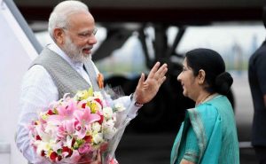 PM @narendramodi being received by External Affairs Minister @SushmaSwaraj on his arrival to Delhi after successful 3-Nation tour pic.twitter.com/9NYcubhLrr