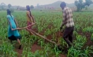 आर्थिक तंगी से जूझ रहे किसान ने बैल की जगह दो बेटियों को जोता