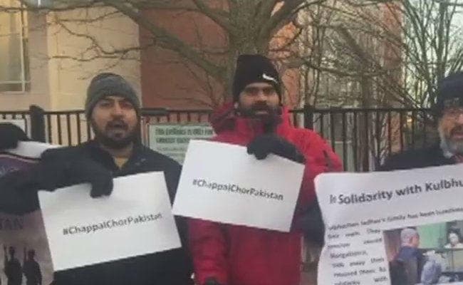 कुलभूषण मुद्दे पर वाशिंगटन में प्रदर्शन : पाक का मतलब अमेरिका से डॉलर ले, हिन्दुस्तान के जूते खा !