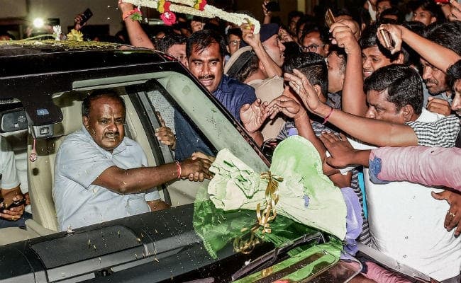 नयी दिल्ली : कर्नाटक में अब जेडीएस-कांग्रेस के गंठबंधन की सरकार बनने जा रही है. इस गठबंधन को राज्यपाल वजुभाई वाला ने सरकार बनाने के लिए आमंत्रित किया है. अब बुधवार को दिन के बारह बजे जेडीएस के एचडी कुमारस्वामी राज्य के मुख्यमंत्री पद की शपथ लेंगे. इससे पहले वे सोमवार को कांग्रेस अध्यक्ष राहुल गांधी और नेता सोनिया गांधी से मिलने दिल्ली जायेंगे.