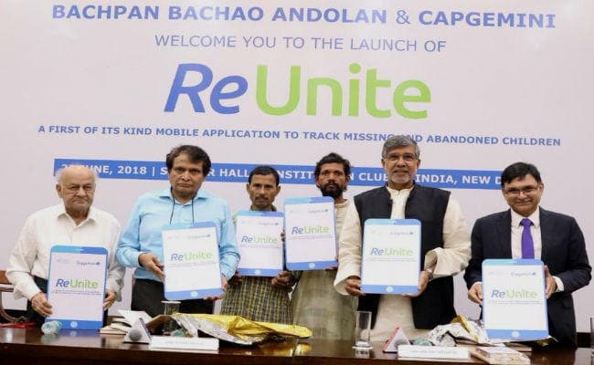 नयी दिल्ली : केंद्रीय वाणिज्य मंत्री सुरेश प्रभु और नोबेल पुरस्कार से सम्मानित कैलाश सत्यार्थी ने शुक्रवार को यहां गुमशुदा और परित्यक्त बच्चों का पता लगाने के लिये एक मोबाइल ऐप्लिकेशन शुरू किया. ऐप का नाम ‘रीयूनाइट’ है. इसे सत्यार्थी नीत बचपन बचाओ आंदोलन और आईटी कंपनी कैपजेमिनी ने मिलकर तैयार किया है.