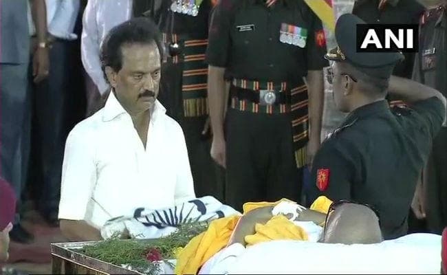 * मरीना बीच पर करुणानिधि परिवार ने दी डीएमके चीफ को श्रद्धाजंलि, कुछ ही पलों में होगा अंतिम संस्कार.