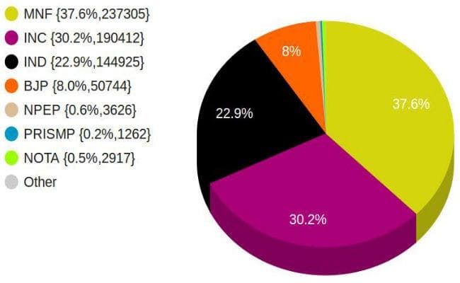 मालूम हो कि मिजोरम में इस बार मिजो नेशनल फ्रंट (MNF) ने बहुमत के साथ जीत दर्ज की है. वहीं, कांग्रेस को बुरी हार झेलनी पड़ी. सीएम लाल थनहवला अपनी दोनों विधानसभा सीटों सेरछिप और चम्फाई साउथ से हार गये हैं.