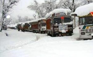 जम्मू : जम्मू कश्मीर के उच्च पहाड़ी क्षेत्रों में हुई बर्फबारी और मैदानी क्षेत्रों में हुई बारिश के बाद पूरा राज्य भयानक शीतलहर की चपेट में है. जवाहर टनल के आसपास के क्षेत्रों में सुबह हुई ताजा बर्फबारी के बाद जम्मू-श्रीनगर राष्ट्रीय राजमार्ग पर फंसी हजारों गाड़ियों की परेशानियां और बढ़ गयी हैं. वहीं श्रीनगर-लेह राष्ट्रीय राजमार्ग के साथ-साथ मुगल रोड लगातार चौथे दिन भी बंद रहा.