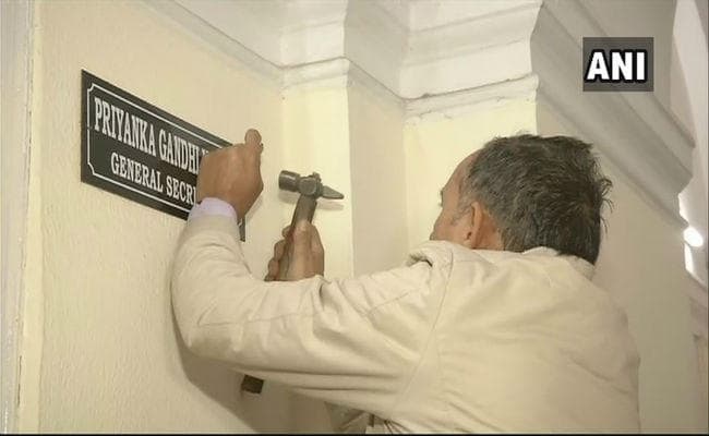 नयी दिल्ली : कांग्रेस महासचिव प्रियंका गांधी वाड्रा ने सोमवार को विदेश से लौटने के बाद पार्टी अध्यक्ष राहुल गांधी से उनके तुगलक रोड स्थित आवास पर मुलाकात की. इसके बाद मंगलवार को यानी आज कांग्रेस मुख्यालय में उनके कमरे के बाहर नेम प्लेट लगा दिया गया है.