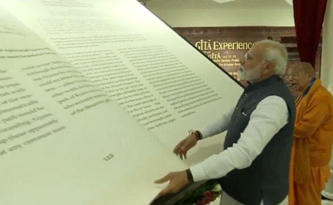 नयी दिल्ली : प्रधानमंत्री नरेंद्र मोदी ने मंगलवार को दिल्ली स्थित इस्कॉन मंदिर में 800 किलो के दुनिया की सबसे बड़ी भगवद गीता का विमोचन किया. इस मौके पर पीएम मोद ने लोगों को संबोधित भी किया.