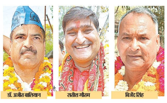 अलीगढ़ : भाजपा ने 2014 की मोदी लहर में ढाई लाख मतों से जीते मौजूदा सांसद सतीश गौतम को फिर उम्मीदवार बनाया है. भाजपा को राष्ट्रवाद और मोदी मैजिक का भरोसा है. कांग्रेस ने जिले के दिग्गज जाट नेता और तीन बार विधायक व 2004 में सांसद रह चुके चौधरी बिजेंद्र सिंह को मैदान में उतारा है. गठबंधन ने नए चेहरे पेशे से बिल्डर, जाट समाज से आने वाले डॉ. अजीत बालियान पर दांव खेला है. गठबंधन को तीनों पार्टियों का जातिगत समीकरण अपने पक्ष में नजर आ रहा है.
