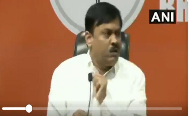 #WATCH Delhi: Shoe hurled at BJP MP GVL Narasimha Rao during a press conference at BJP HQs .More details awaited pic.twitter.com/7WKBWbGL3r