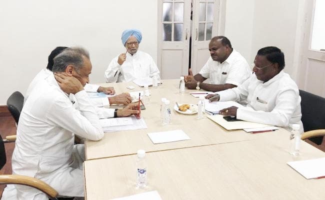 नयी दिल्ली : नीति आयोग के संचालन परिषद की बैठक से कुछ घंटे पहले कांग्रेस शासित चार राज्यों के मुख्यमंत्रियों और कर्नाटक के मुख्यमंत्री एचडी कुमारस्वामी ने यहां पूर्व प्रधानमंत्री मनमोहन सिंह से मुलाकत कर इस बैठक में उठाये जाने वाले मुद्दों पर विचार-विमर्श किया. मध्यप्रदेश के मुख्यमंत्री कमलनाथ, राजस्थान के मुख्यमंत्री अशोक गहलोत, छत्तीसगढ़ के मुख्यमंत्री भूपेश बघेल, कुमारस्वामी और पुडुचेरी के मुख्यमंत्री वी नारायणसामी ने सिंह के साथ बैठक की.