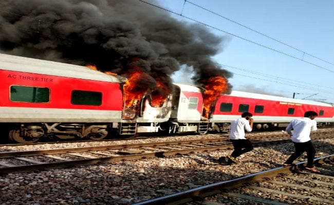 बताया जाता है कि कोच से धुआं और चिंगारी निकलने की शिकायत के बाद ट्रेन को हरियाणा के पास स्थित असौटी और बल्लभगढ़ स्टेशनों के बीच रोक दिया गया. यात्रियों को कोच से बाहर निकाला गया. कुछ ही देर बाद ट्रेन के दो एसी कोच से आग की लपटें निकलने लगी. फायर-कर्मियों को सूचना दी गयी जिसके बाद आग पर काबू पा लिया गया.