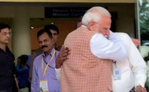 पीएम मोदी के संबोधन के बाद एक भावुक क्षण भी आया. दरअसल, संबोधन के बाद पीएम मोदी वैज्ञानिकों के बीच पहुंचे. माहौल को हल्का करने के लिए उन्होंने कहा कि अच्छा है आप सीनियर लोग मौजूद हैं तो इससे बड़ा फायदा मिलता है. भाषण के बाद जब पीएम मोदी इसरो भवन से बाहर निकले तो उन्हें छोड़ने के लिए इसरो प्रमुख के. सिवन भी आये. पीएम जैसे ही अपने वाहन की ओर बढ़ने वाले थे वैसे ही सिवन भावुक हो गये. बिना पल गंवाए पीएम मोदी ने अपने गले से लगा लिया. पीएम मोदी ने गले लगाते हुए सिवन की पीठ कई बार थपथपाई. इस दौरान दोनों भावुक नजर आये और सिवन की आंखों से आंसू छलक पड़े.
