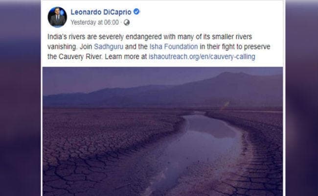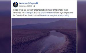 ऑस्कर पुरस्कार विजेता डिकैप्रियो ने हाल ही में अपने फेसबुक पेज पर एक संदेश में कहा, भारतीय नदियां गंभीर खतरे में है, उनमें से कई छोटी नदियां विलुप्त हो रही हैं. कावेरी नदी के संरक्षण के लिए सदगुरु और इशा फाउंडेशन की लड़ाई में शामिल हों.