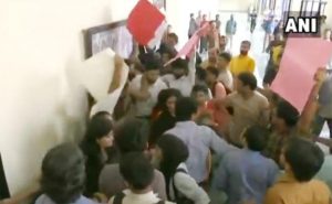 मालूम हो गुरुवार को केन्द्रीय मंत्री जितेन्द्र सिंह के कार्यक्रम में भी कुछ छात्रों ने नारेबाजी की जिसके बदले में अखिल भारतीय विद्यार्थी परिषद (एबीवीपी) के छात्रों ने भी जम कर नारे लगाए.