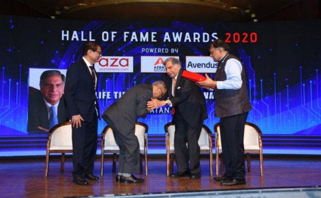 नयी दिल्ली: मुंबई में एक कार्यक्रम के दौरान इंफोसिस के सह-संस्थापक व उद्योगपति नारायण मूर्ति ने देश के जाने माने उद्योगपति रतन टाटा का पैर छूकर आर्शीवाद लिया. दिलचस्प बात है कि नारायण मूर्ति खुद 88 साल के हैं. मौका था TiECON मुंबई के 2020 लाइफ टाइम अचीवमेंच अवॉर्ड समारोह का जिसमें मशहूर उद्यमी रतन टाटा को इस अवॉर्ड नवाजा गया. इन्फोसिस के सह-संस्थापक एनआर नारायण मूर्ति ने उन्हें ये अवॉर्ड दिया.