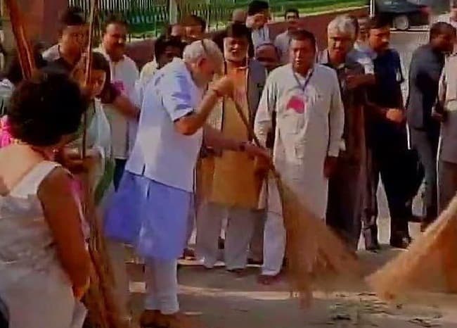 इसके बाद मोदी इंडिया गेट पहुंच कर स्वच्छ भारत अभियान की शुरुआत करेंगे. इससे पहलेउन्होंने ट्वीट करके लालबहादुर शास्त्री और महात्मा गांधी को ट्विट करके नमन किया. नरेंद्र मोदी के राजघाट पहुंचने से पहले कांग्रेस अध्यक्ष सोनिया गांधी, पूर्व प्रधानमंत्री मनमोहन सिंह, लोकसभा स्पीकर सुमित्रा महाजन समेत कई दिग्गज नेता मौजुद थे.