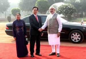 प्रधानमंत्री नरेंद्र मोदी ने कहा कि हमारे सामूहिक व्यापार व परिवहन में कोई बाधा नहीं है और हम अपने विवाद शांतिपूर्ण तरीके से अंतरराष्ट्रीय कानून के तहत सुलझायेंगे. उन्होंने कहा कि हमारे विचारों में बहुत सारी समानताएं हैं. वियतनाम के प्रधानमंत्री नुएन तन जुंग और उनकी पत्नी त्रन तान्ह किम के लिए राष्ट्रपति भवन में आज एक कार्यक्रम आयोजित किया गया था.