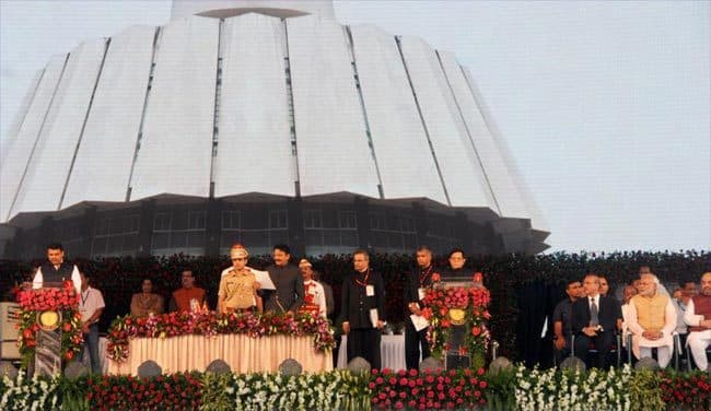 शपथ ग्रहण समारोह में प्रधानमंत्री नरेंद्र मोदी, उनके मंत्रिमंडल के सदस्य और पार्टी के वरिष्ठ नेता भी शामिल हुए. लगभग 40 हजार लोगों की उपस्थिति में होनेवाले इस शपथ ग्रहण समारोह में प्रधानमंत्री और उनके मंत्रिमंडल के कई सदस्यों के अलावा भाजपा शासित राज्यों के मुख्यमंत्री, अभिनेता, बड़े कारोबारी और अन्य जानी-मानी हस्तियां शामिल हुई. उल्लेखनीय है कि 80 के दशक में मुंबई में ही आयोजित एक कार्यक्रम दौरान पूर्व प्रधानमंत्री अटल बिहारी वाजपेयी ने समुंदर में खिलेगा कमल की घोषणा की थी. अटल का वह यह सपना आज सच हो गया. यही वजह है कि वानखेडे स्टेडियम के पास समुंदर के किनारे कमल के फूल के 40 कटआउट लगाये गये.